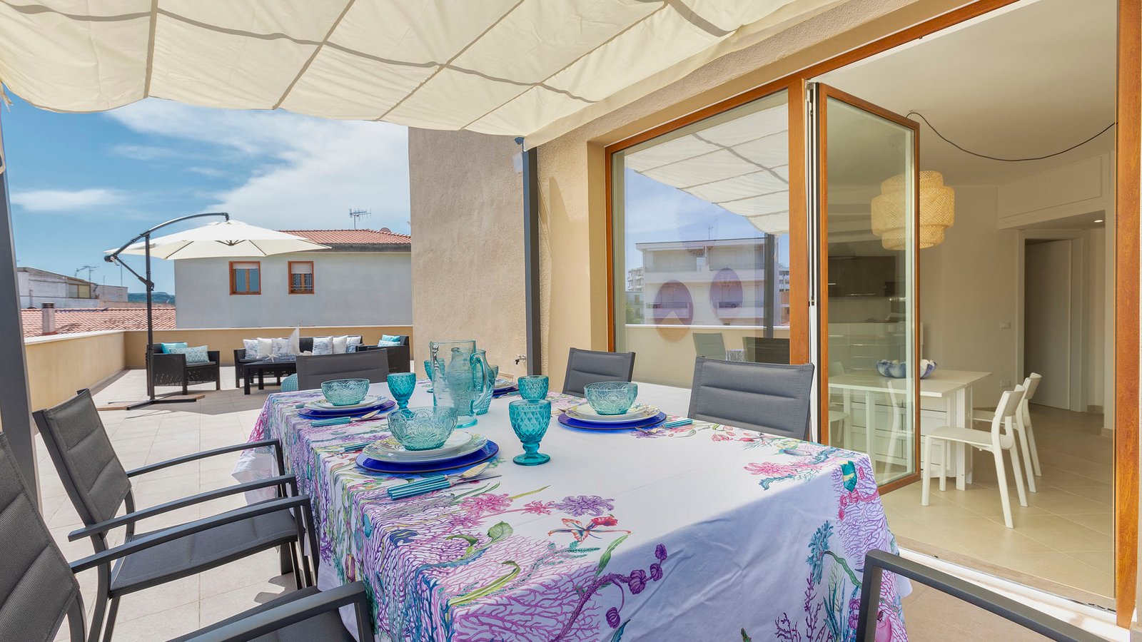 Alghero, in the north of Sardinia, in a convenient position and in the immediate vicinity of the main services of the Catalan town. the apartment four-room apartment with 6 beds, is the ideal solution for a holiday in the sign of comfort and privacy. Located on the 3rd floor without a lift, it has three bedrooms, one double with private bathroom, one with a single bed and a pull-out bed and one with two single beds.