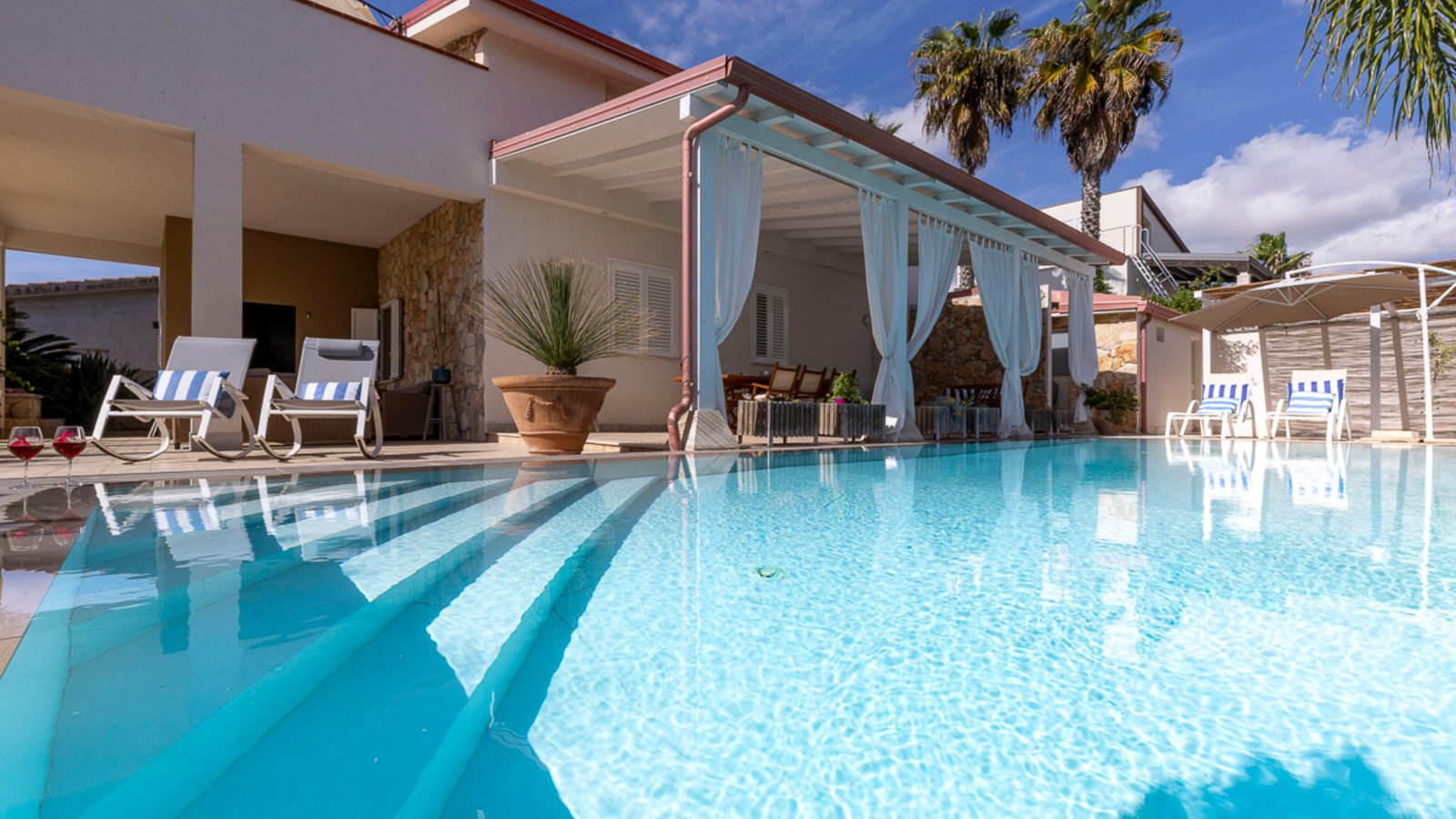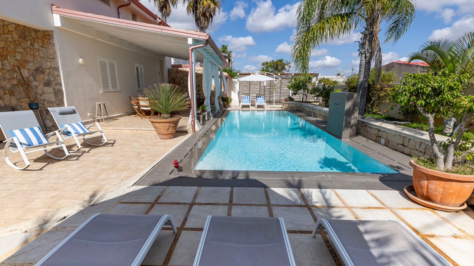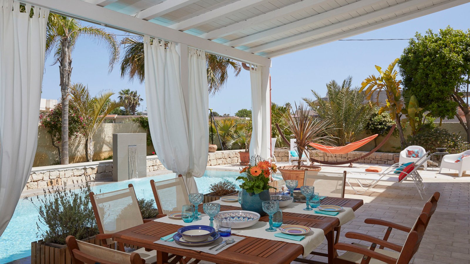 The outdoor areas are a true highlight. Soak in the Sicilian sun by the private pool, dine al fresco under the shaded veranda, or host a barbecue while the kids play safely in the garden. A private parking area is also available on-site for added convenience.