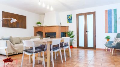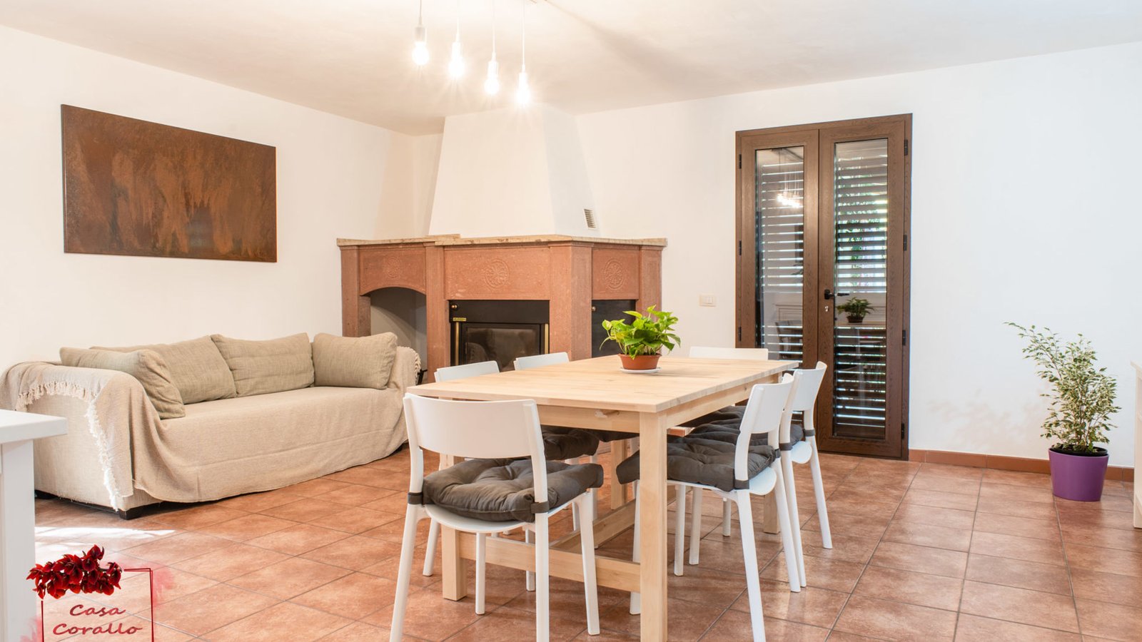 The house welcomes you with a large living room, equipped with a fireplace for cooler evenings, a dining table and a comfortable sofa in which to relax, perhaps watching a NetflixTM series on the Smart TV or listening to music on SpotifyTM with AlexaTM.