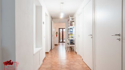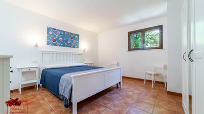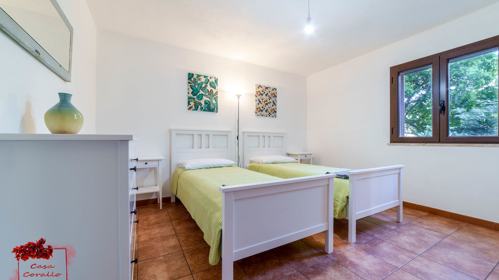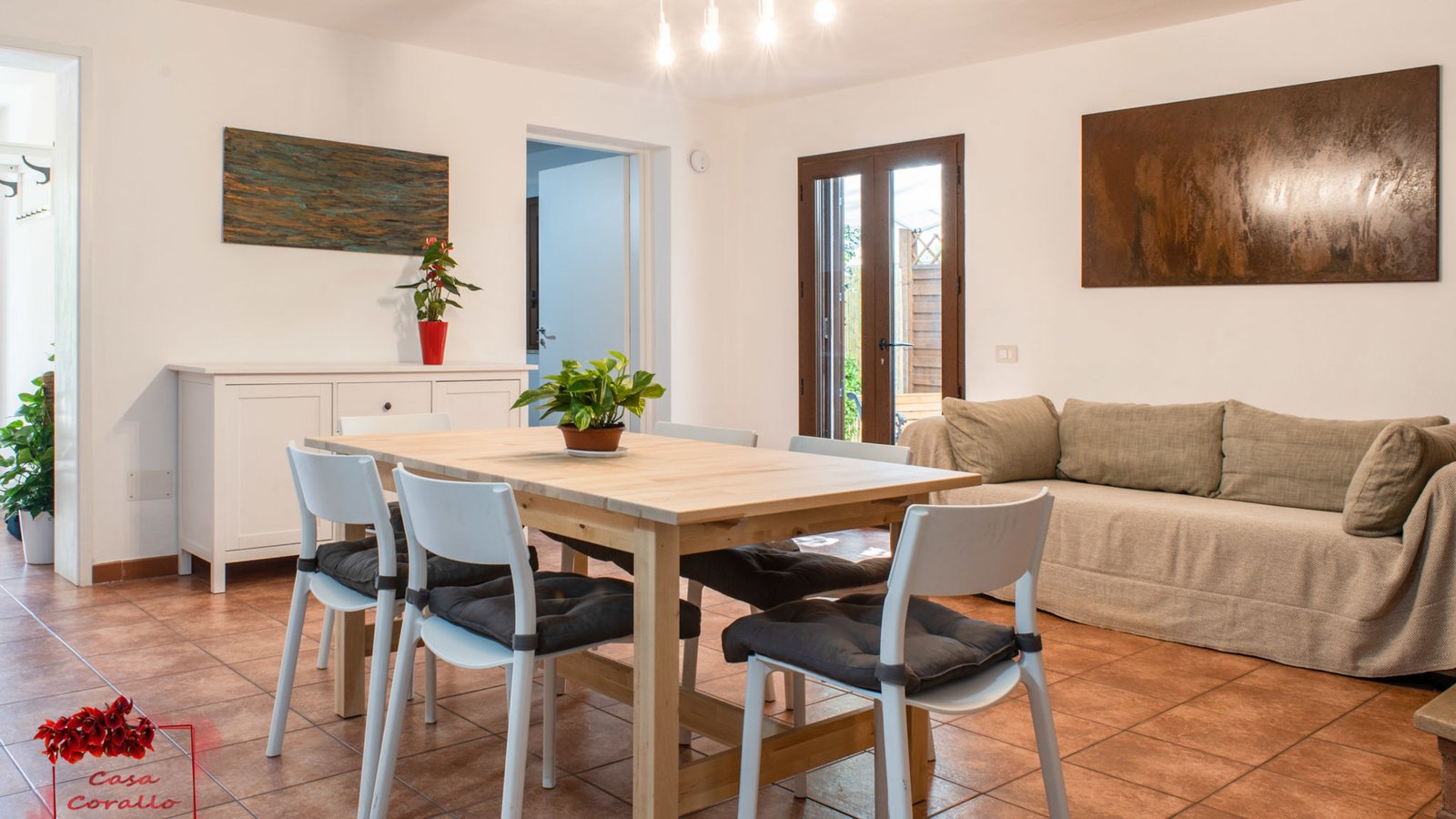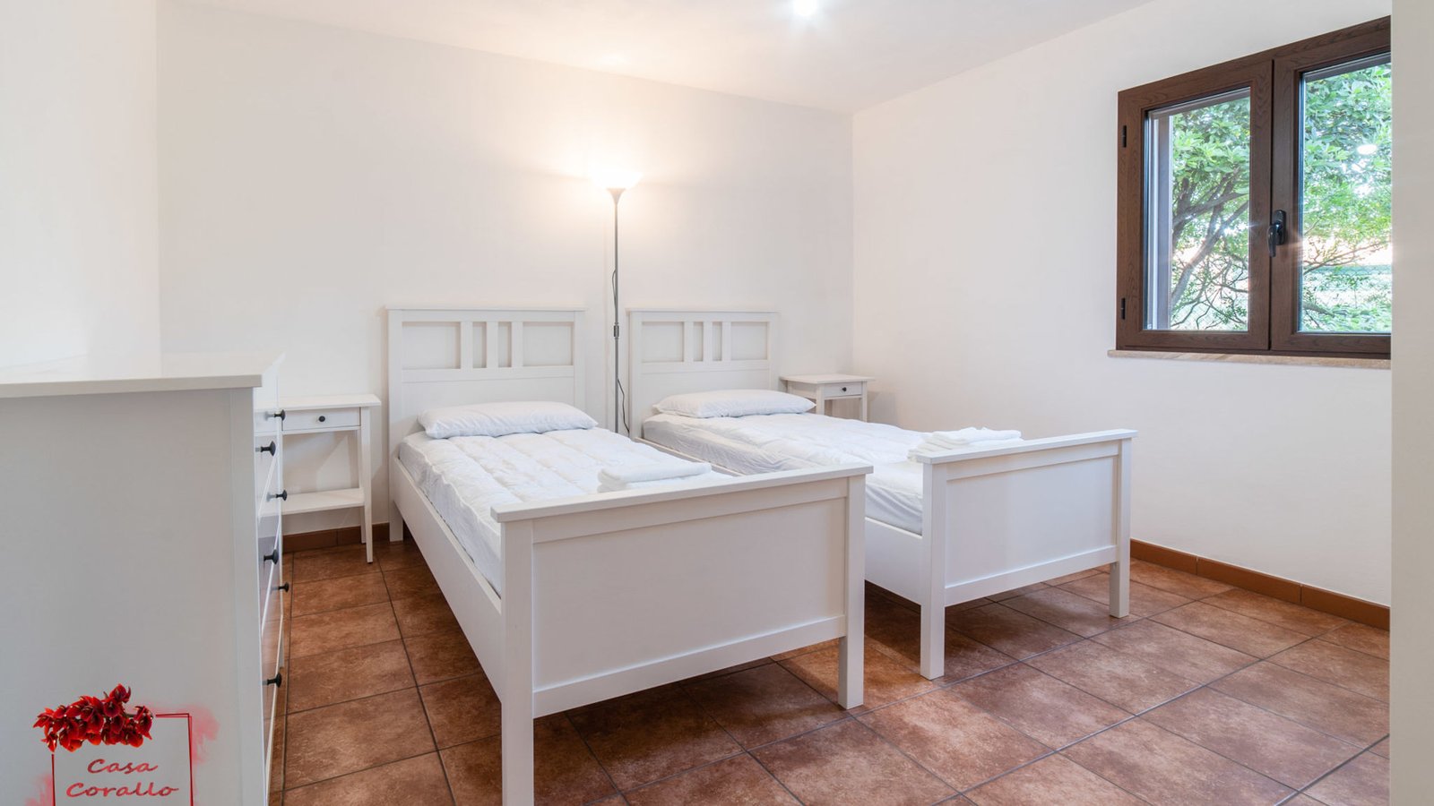 From the corridor, in which a comfortable PC station with a small bookcase is inserted, you enter the sleeping area, consisting of three bedrooms: the “S’Archittu” room, with double bed, private bathroom and walk-in closet; “Is Arutas” room, with double bed; “S’Anea” room, with two single beds. All bedrooms are equipped with wardrobes and bed and bath linens. The sleeping area is completed with a second bathroom, with shower, where there is a washing machine.