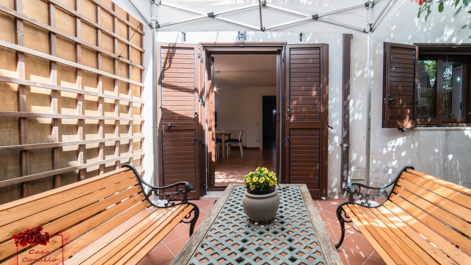 A small patio completes the house. The gazebo and benches create the ideal atmosphere to relax at the end of the day, with a drink or a book.