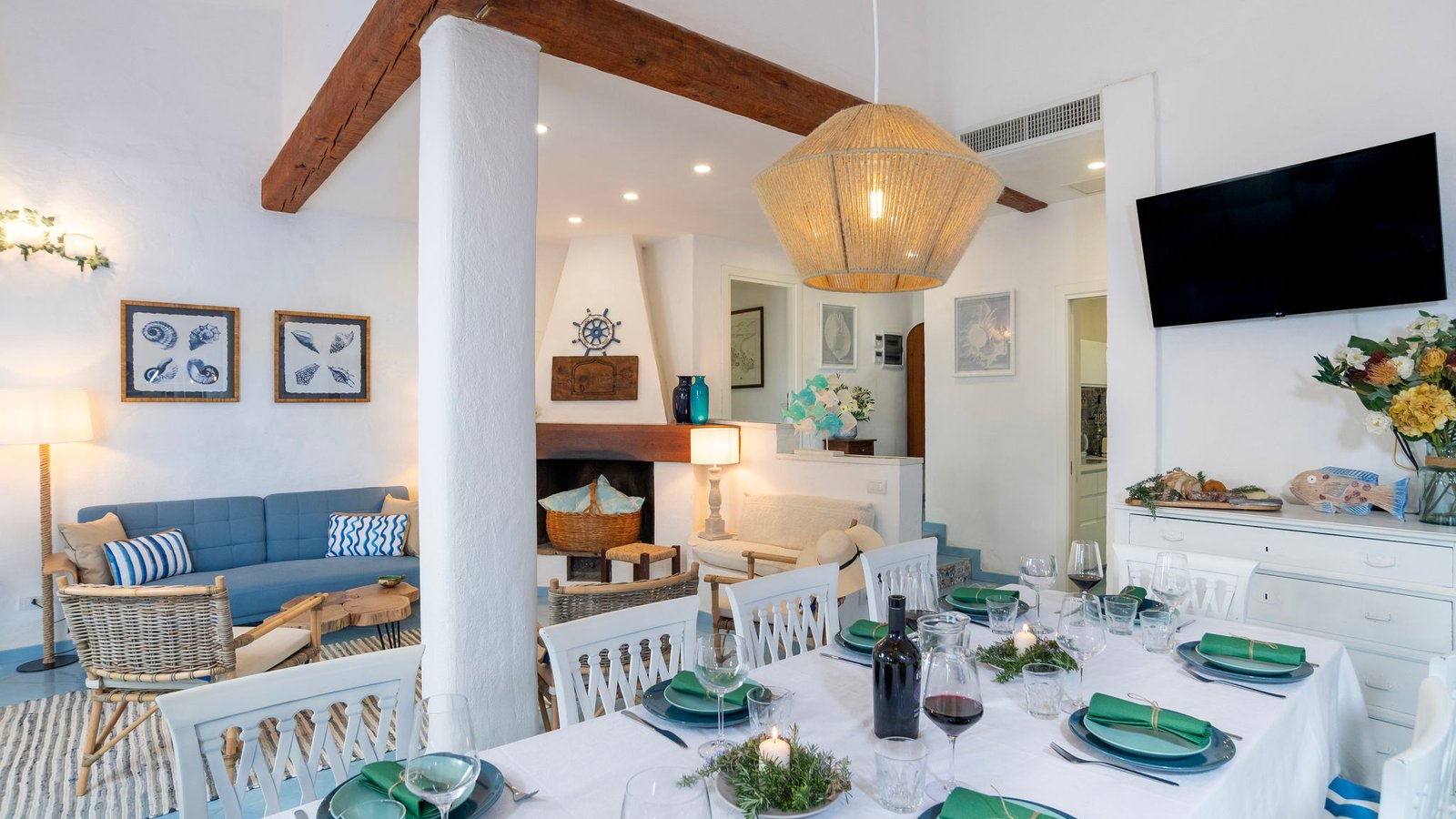 A covered outdoor dining area under a large portico provides the perfect setting for leisurely meals, while an above-ground swimming pool nearby offers a refreshing escape. Whether you’re sipping an apĂ©ritif in the garden or dining under the portico at sunset, the breathtaking view over one of the world’s most beautiful seas promises an unforgettable experience.