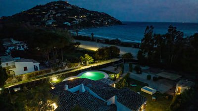 Set in a truly unique location, this stunning seaside retreat offers panoramic views that stretch endlessly over the emerald and turquoise waters of Sardinia—just steps from the beach. Nestled in the residential area of Torre delle Stelle, between Cagliari and Villasimius, the property consists of three adjacent, independent units, each offering modern comforts and inviting interiors.