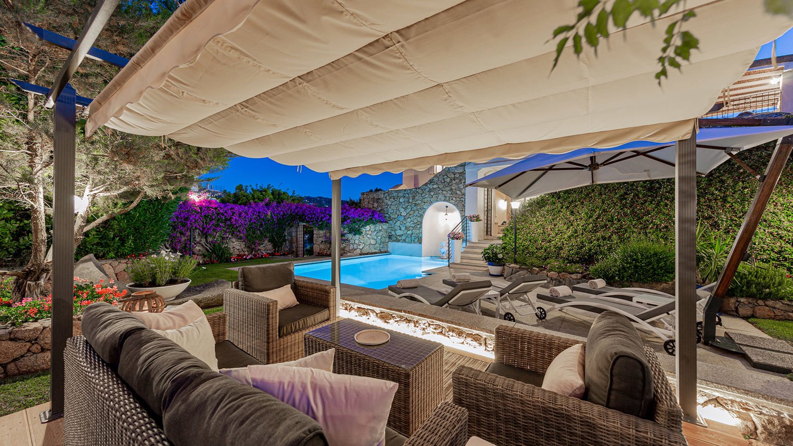 Villa enjoys a strategic location with a seaview, garden view and pool view .