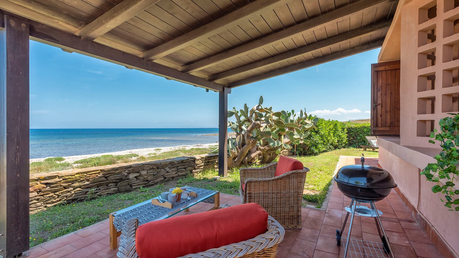 Furnished with care and taste, it has everything you need for outdoor dining a few meters from the coast, mesmerized by the view of the coast and the sound of the waves breaking on the shore.