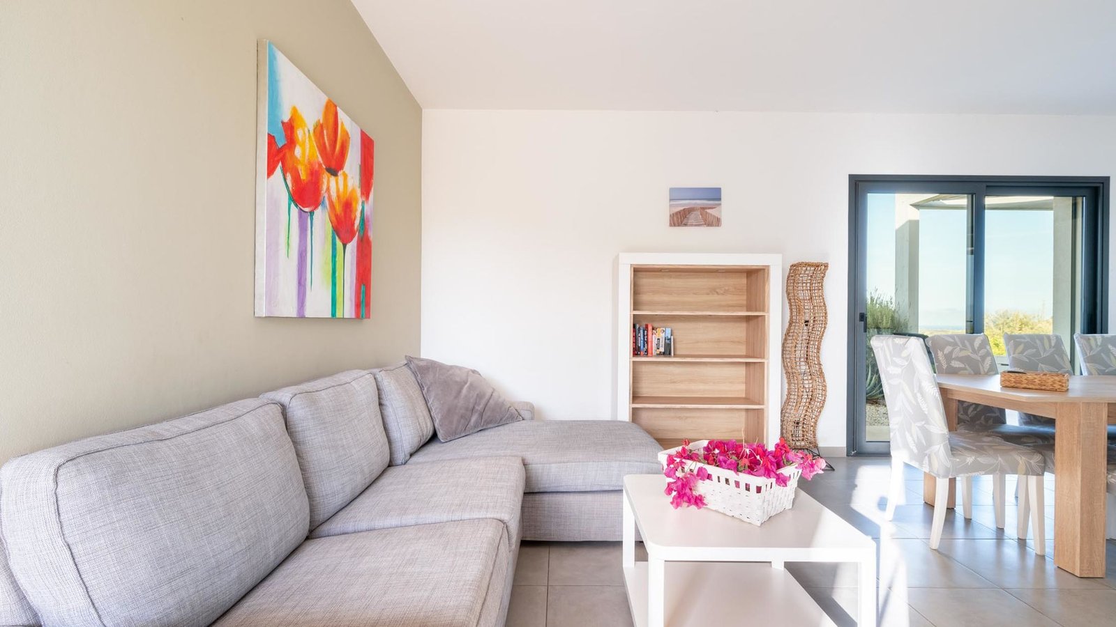 The sleeping area consists of three bedrooms, each with a comfortable double bed. The villa is non-smoking, ensuring a fresh and pleasant atmosphere for all guests.