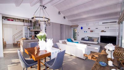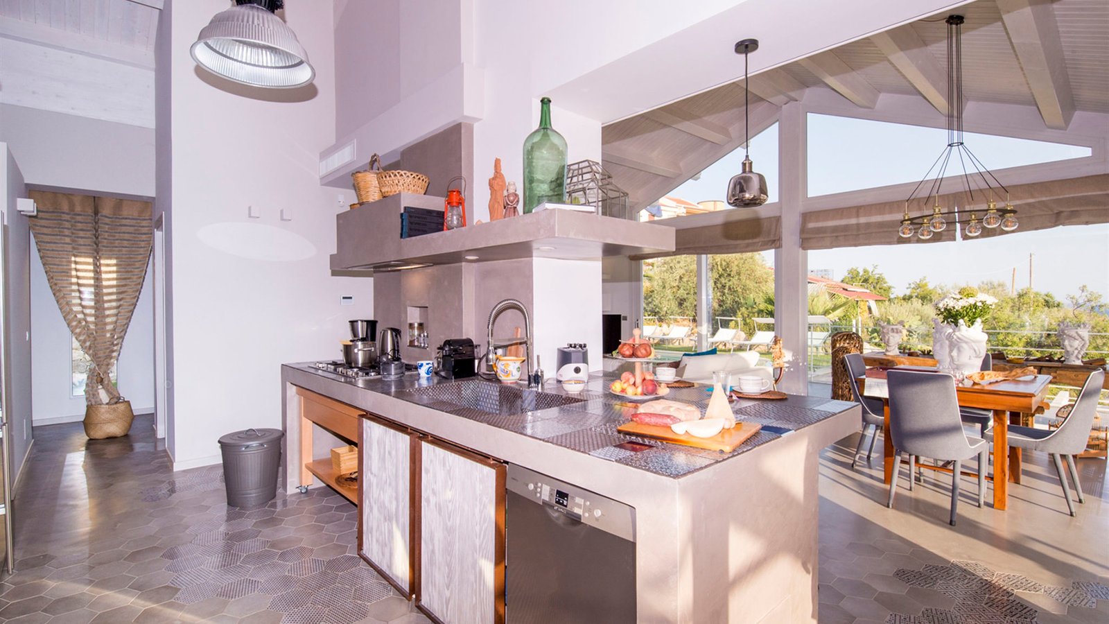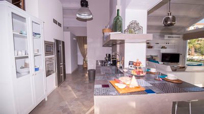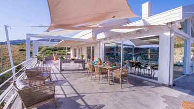 Built in 2017, the villa showcases a refined contemporary style and is equipped with modern technologies for maximum comfort. Its interiors are bright, spacious, and tastefully designed with meticulous attention to detail. The living area, fully enclosed in glass, allows guests to cook, dine, and unwind without ever losing sight of the breathtaking surroundings.