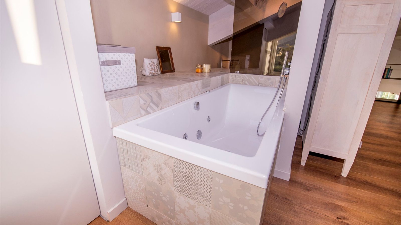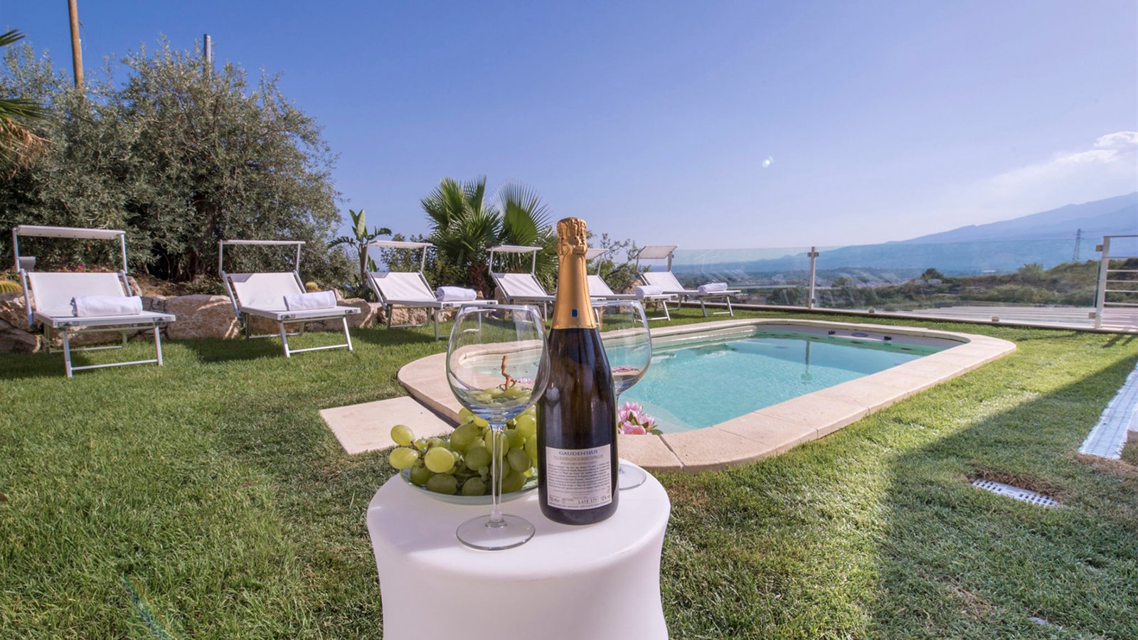 Outdoors, a large covered veranda—fully furnished and perfect for open-air meals—invites you to savor Sicilian delicacies in a setting of natural beauty. The lush garden features a heated and illuminated mini-pool with a counter-current swimming option, offering the perfect place to relax both day and night. Whether you’re soaking in the warm water or watching the sun set behind Mount Etna, every moment feels extraordinary.