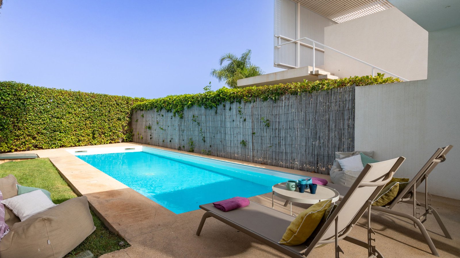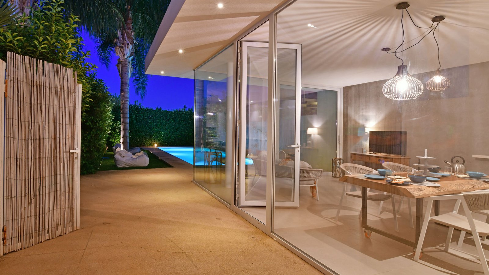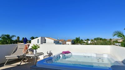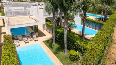 Please note: the property shares a connection with the adjacent villa (Villa Carrubbo). When both villas are booked together, guests can move freely between the two homes through their main entrances or via a discreet, lockable garden door—ideal for larger groups or families traveling together while still enjoying privacy.