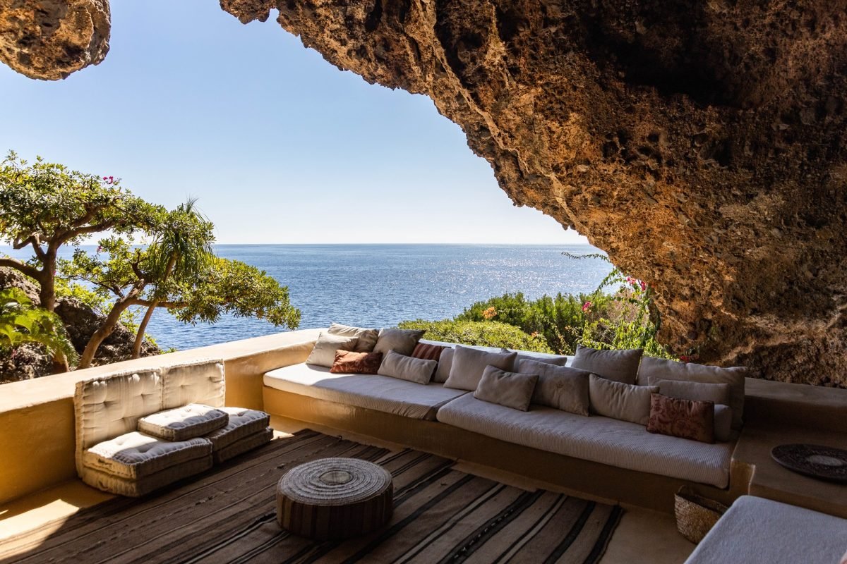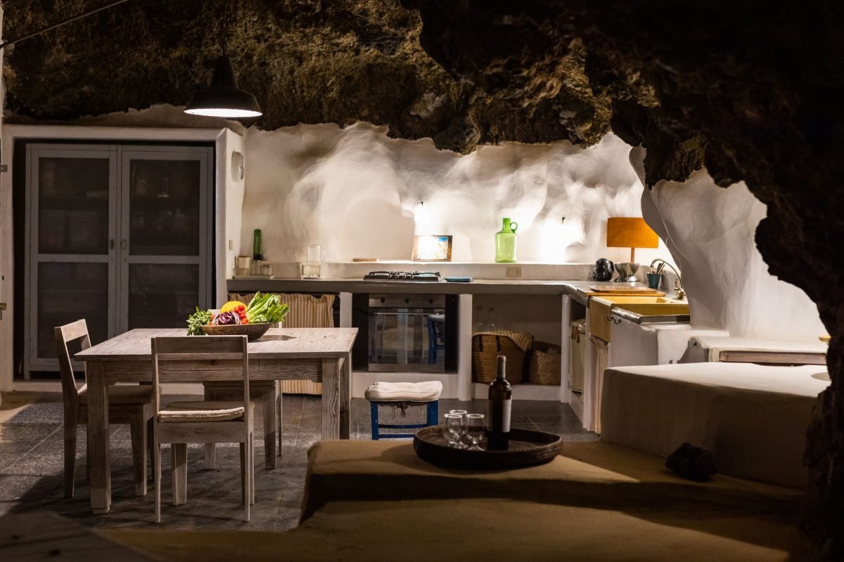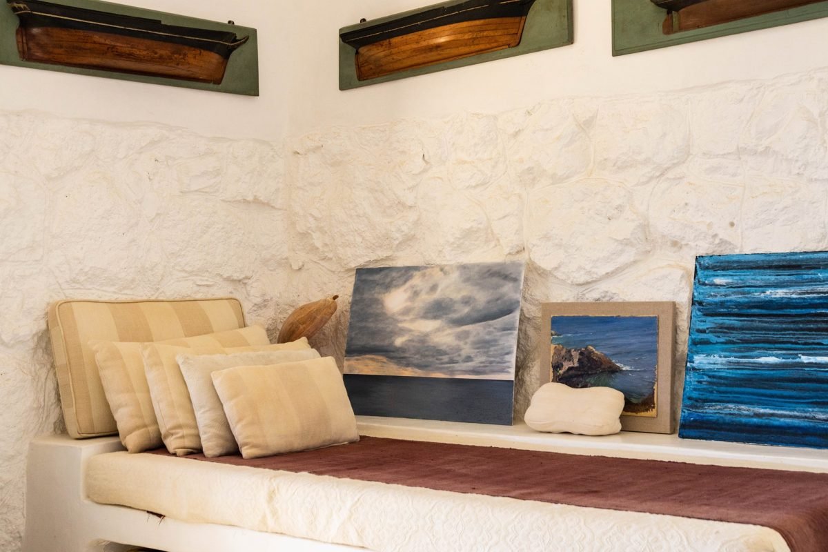 Villa 2 bedroom in Ustica is a small house nestled in the cliff on the island of Ustica, in the Contrada San Paolo, to the west of the island, near the famous Grotta delle Barche, accessible more easily by sea than by land. The house is an intimate and calming space – composed of two bedrooms, a charming living room with sofas and two small bathrooms, reminiscent of the bathrooms of pleasure boats. At the back of the house, there’s a natural cave the size of a tennis court, the living centre of the house.