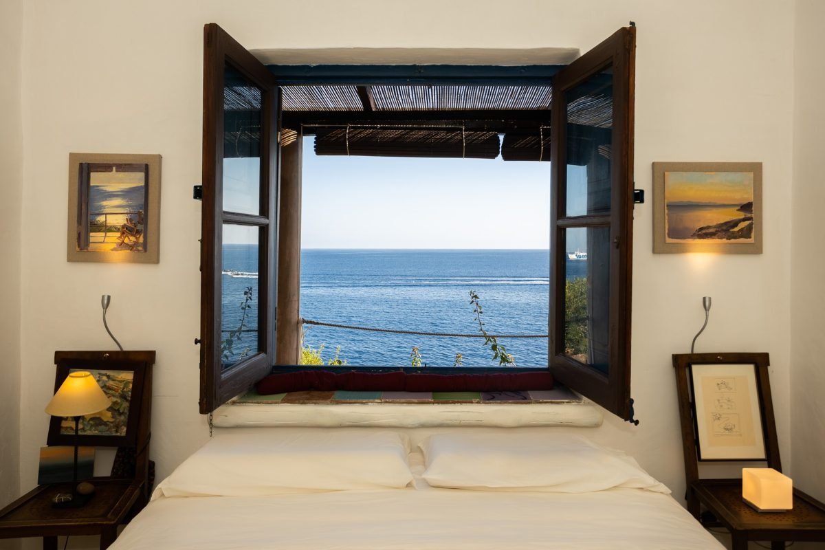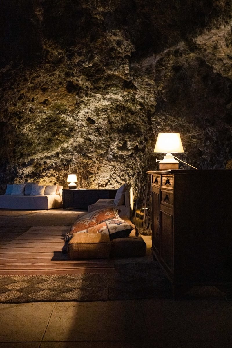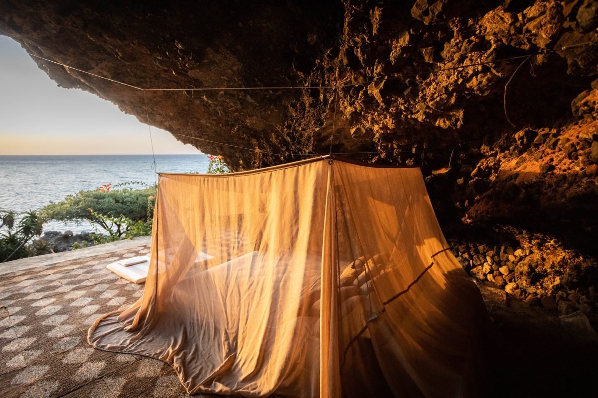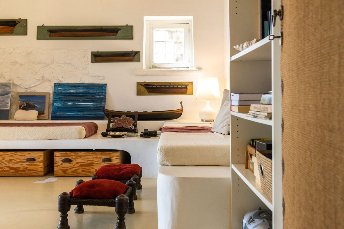 Villa 2 bedroom in Ustica is a small house nestled in the cliff on the island of Ustica, in the Contrada San Paolo, to the west of the island, near the famous Grotta delle Barche, accessible more easily by sea than by land. The house is an intimate and calming space – composed of two bedrooms, a charming living room with sofas and two small bathrooms, reminiscent of the bathrooms of pleasure boats. At the back of the house, there’s a natural cave the size of a tennis court, the living centre of the house.