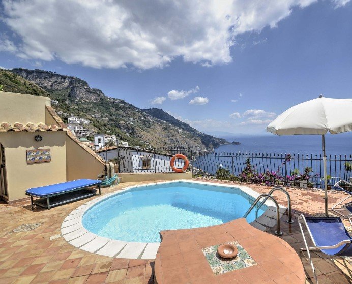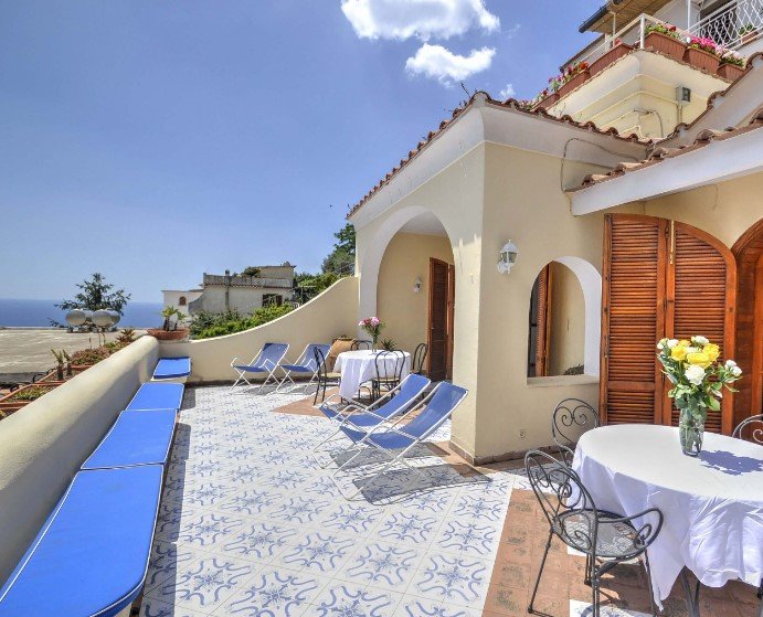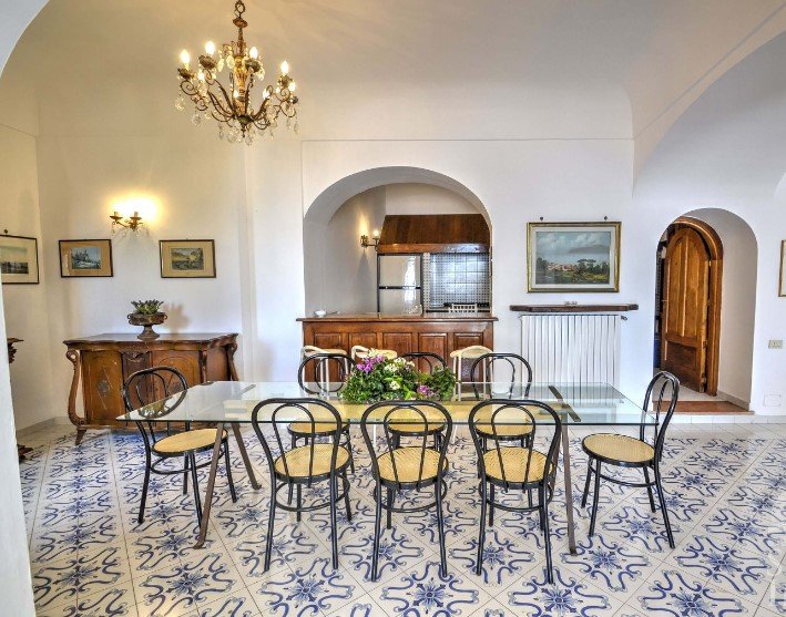 Villa 4 bedroom is part of the historical center of Praiano, which consists of a cluster of white houses on the highest area of a steep slope of a hill overlooking the sea. The houses are nestled around the beautiful bell-tower and the eighteenth-century church of San Luca.